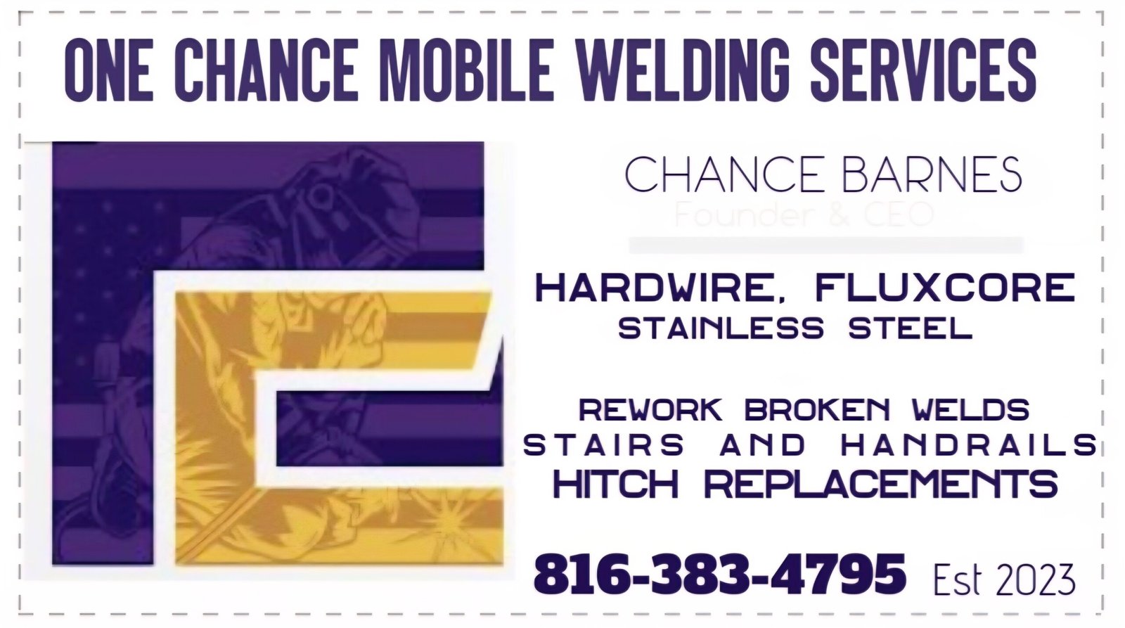 As a local business owner, he takes pride in building trust through clear communication, honest pricing, and a job done right the first time. When you choose One Chance Mobile Welding Services, you’re not hiring a big company—you’re working directly with a dedicated expert who stands behind every weld.